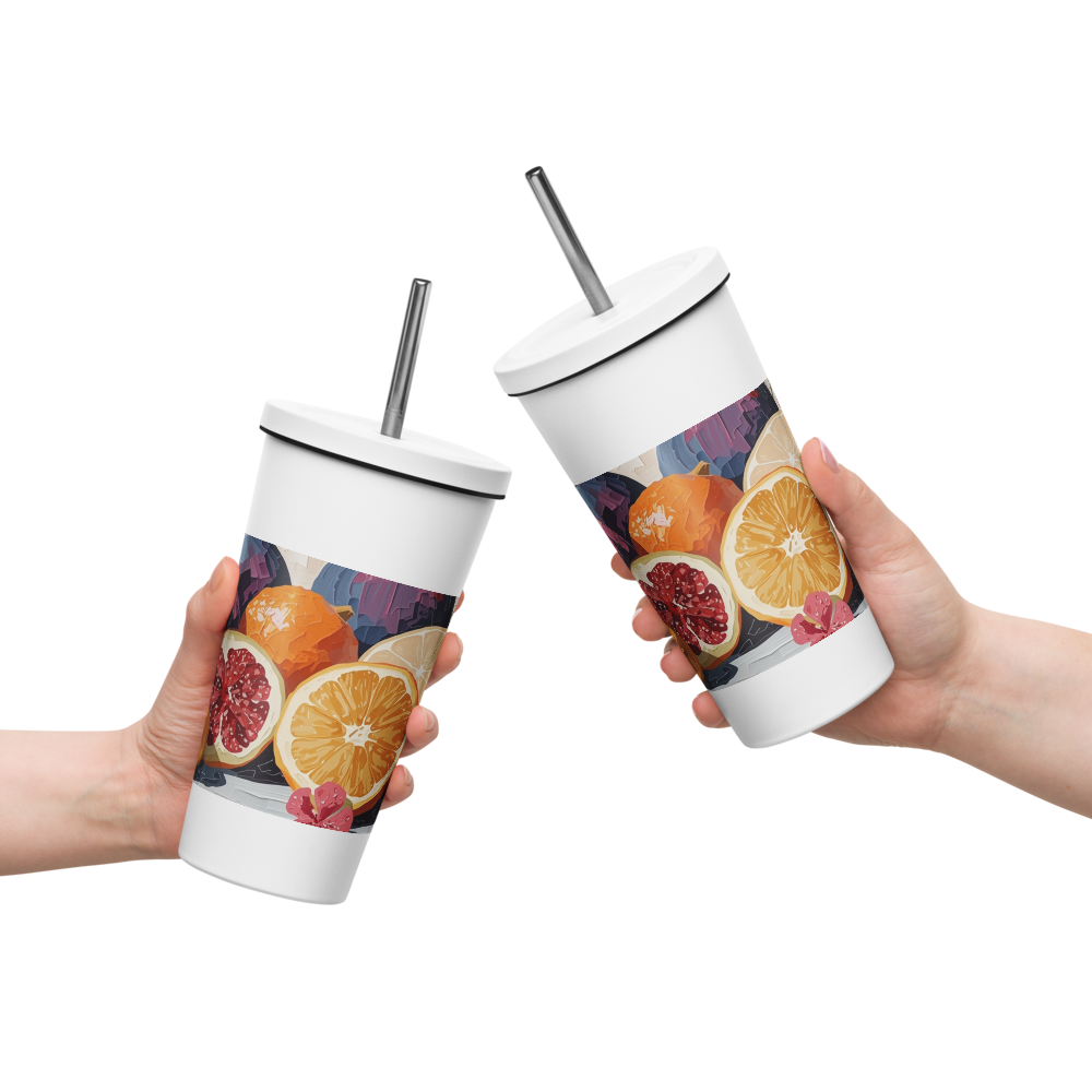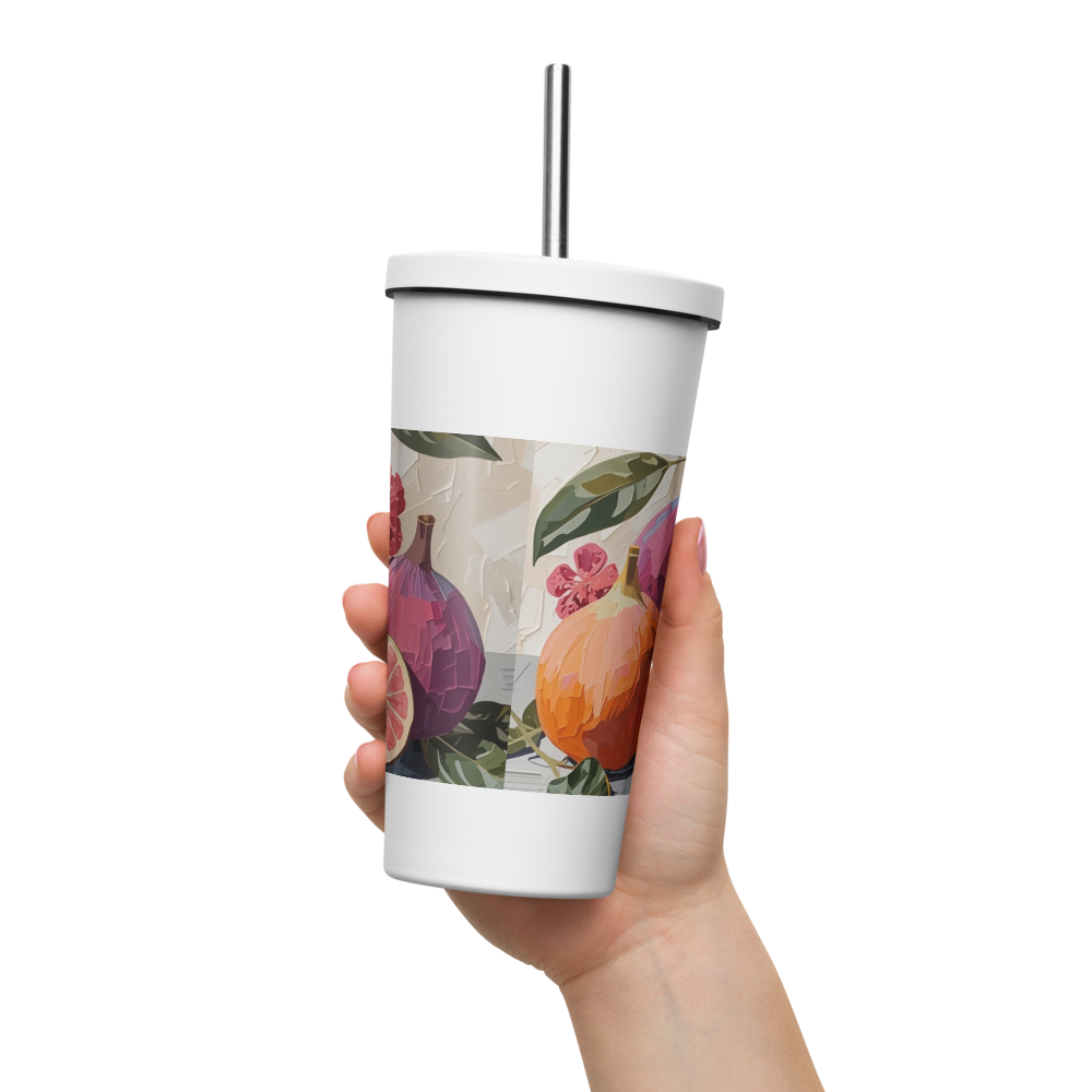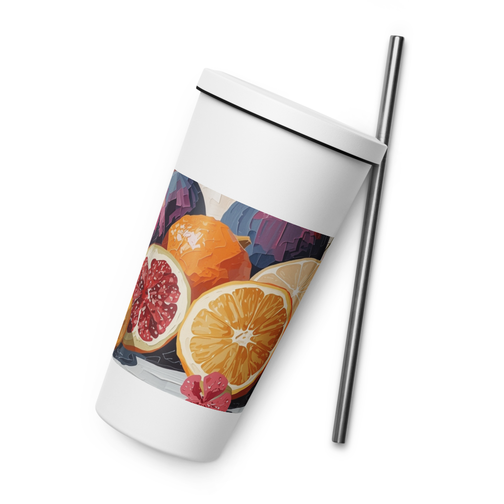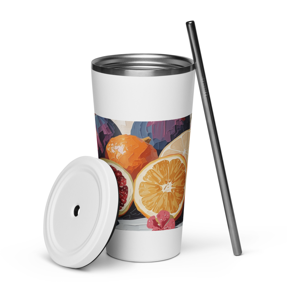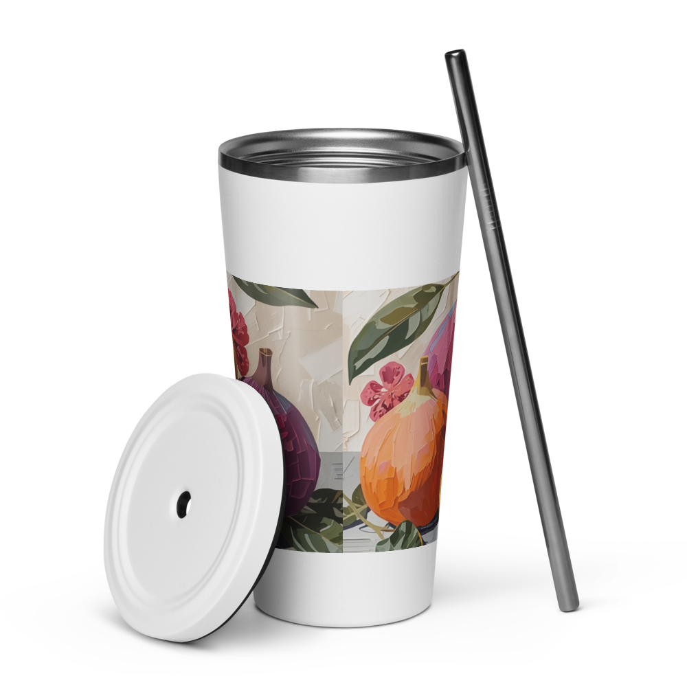 Gobelet isotherme en acier inoxydable avec paille – 600 ml – Pour boissons chaudes et froides