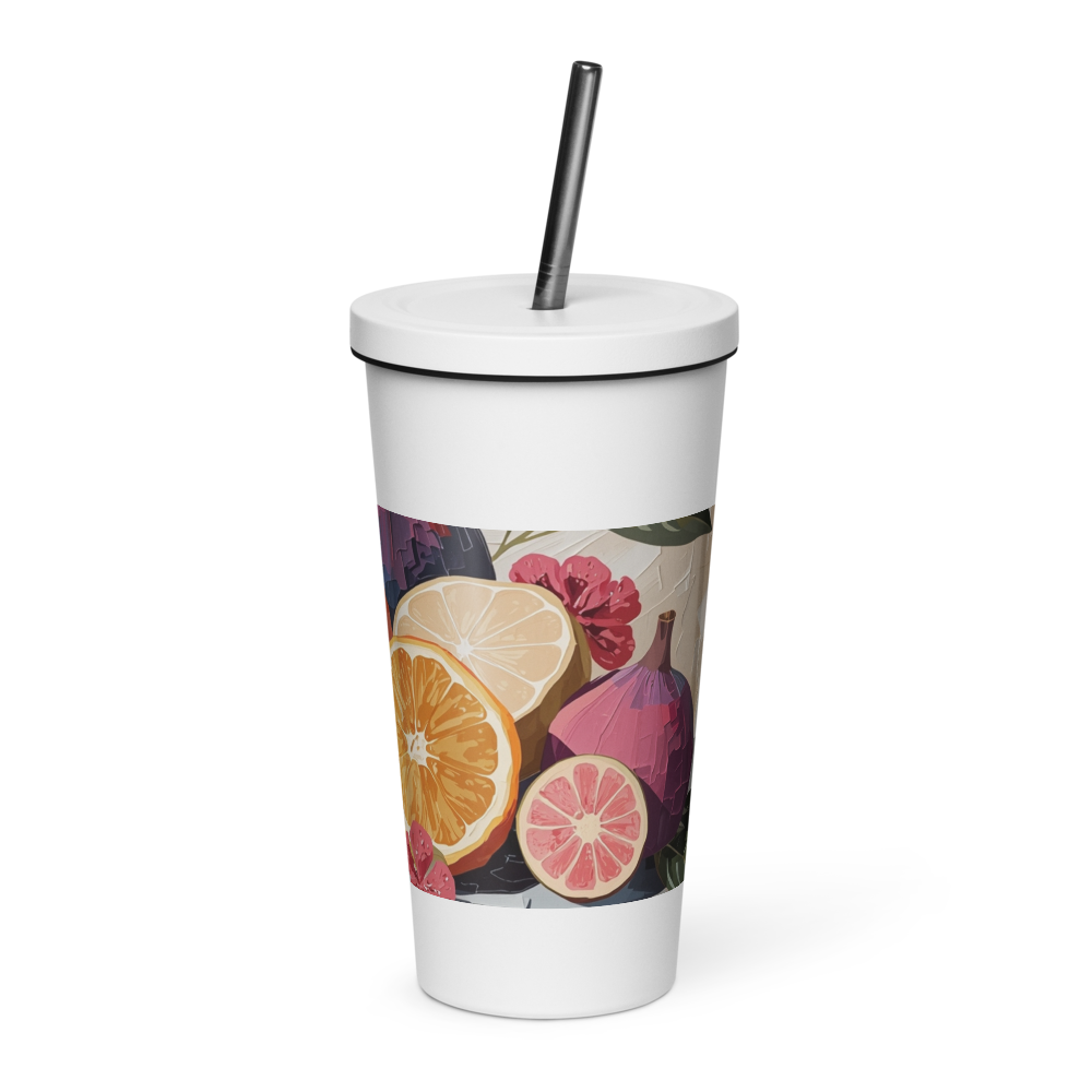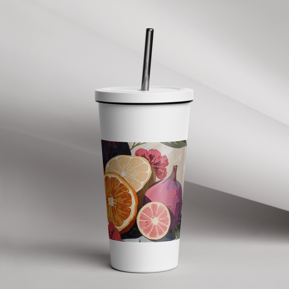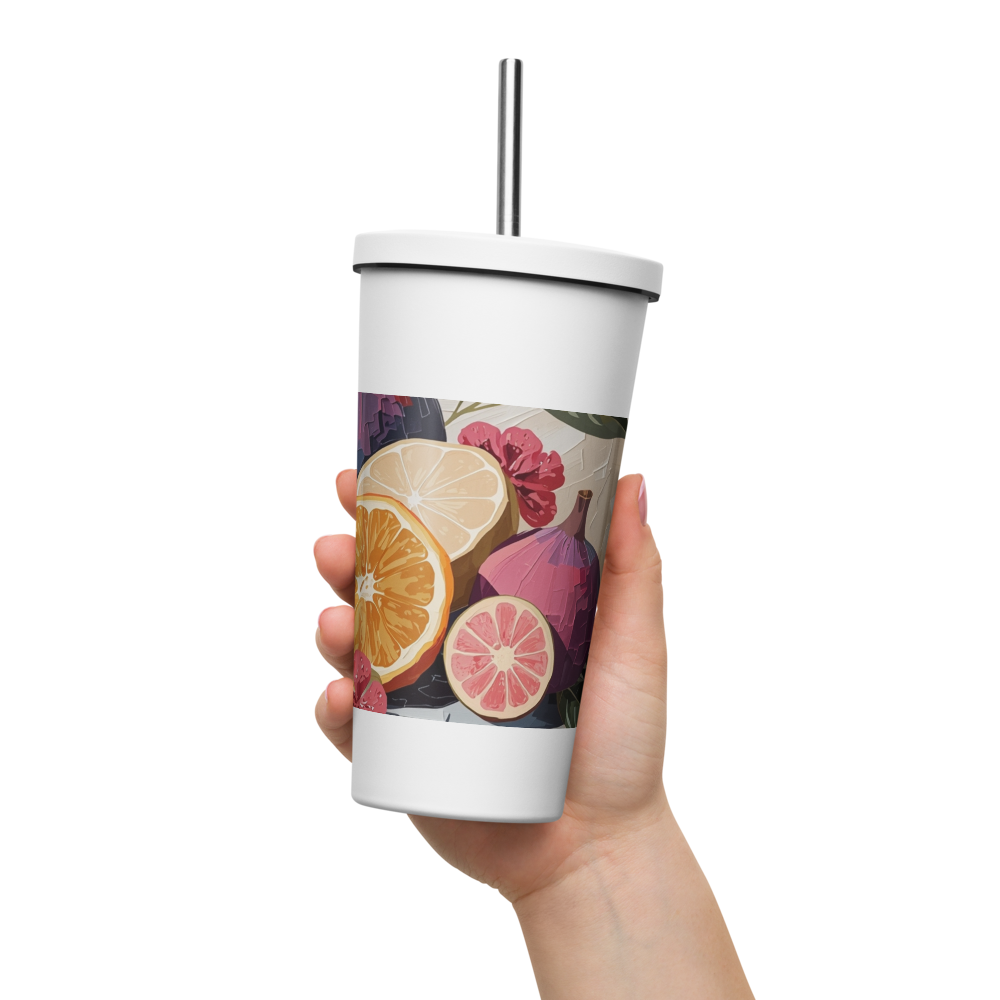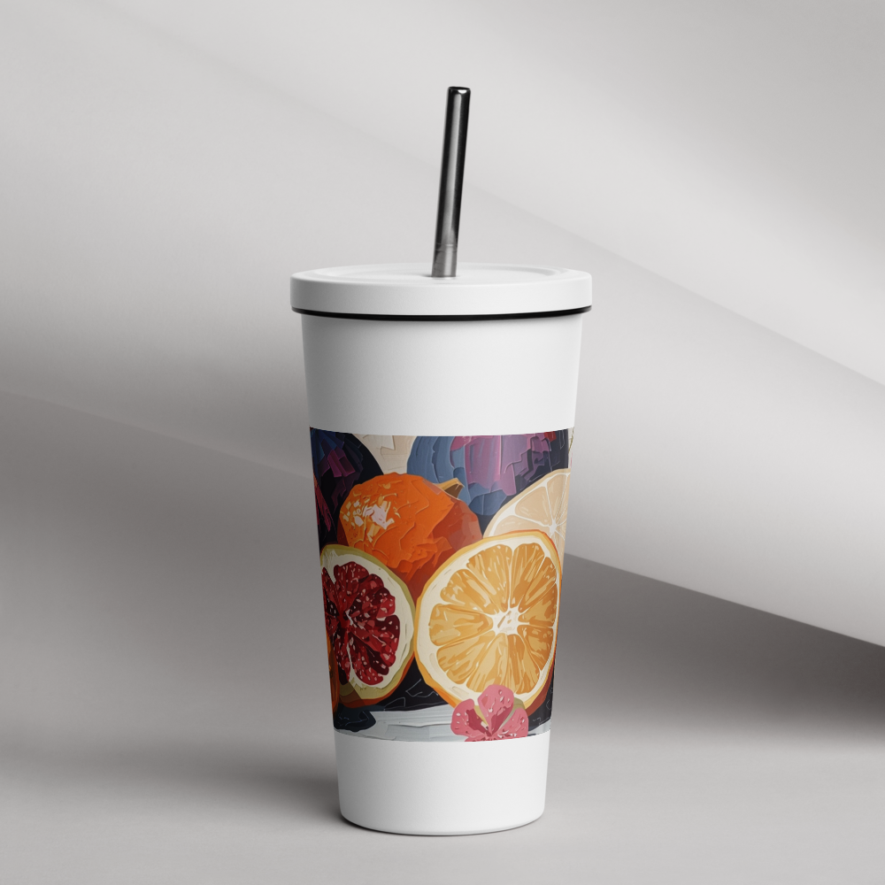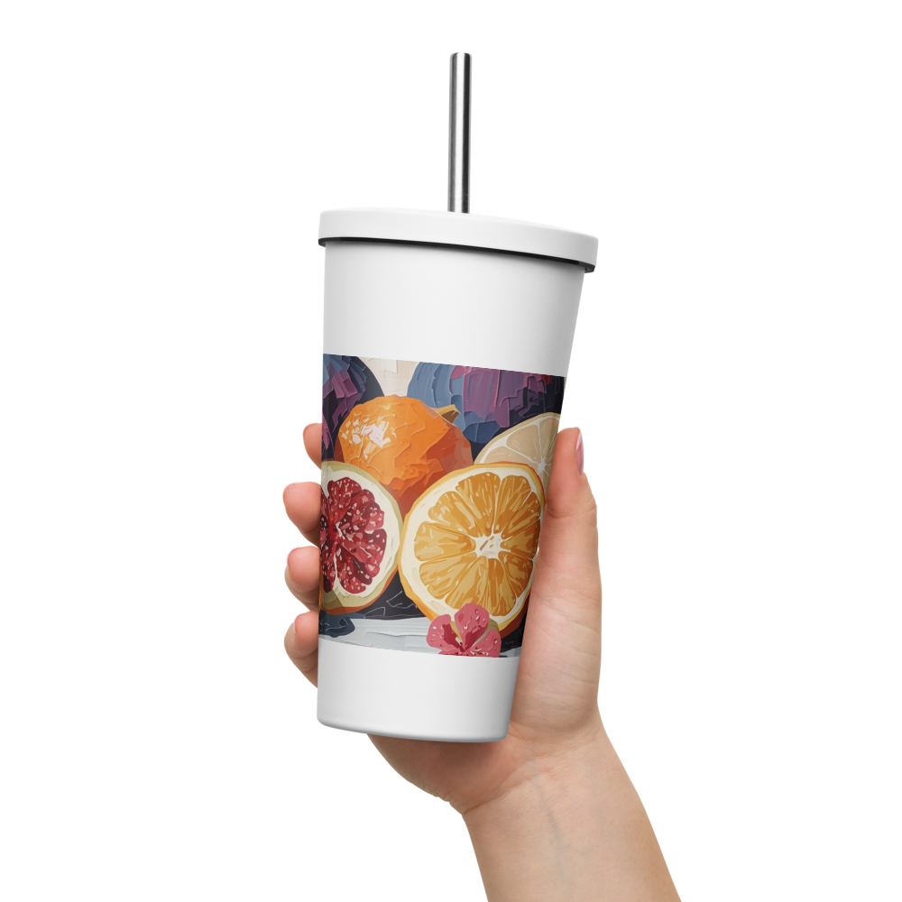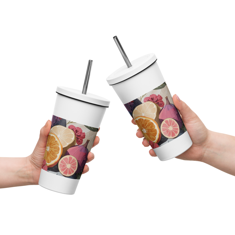 Gobelet isotherme en acier inoxydable avec paille – 600 ml – Pour boissons chaudes et froides
